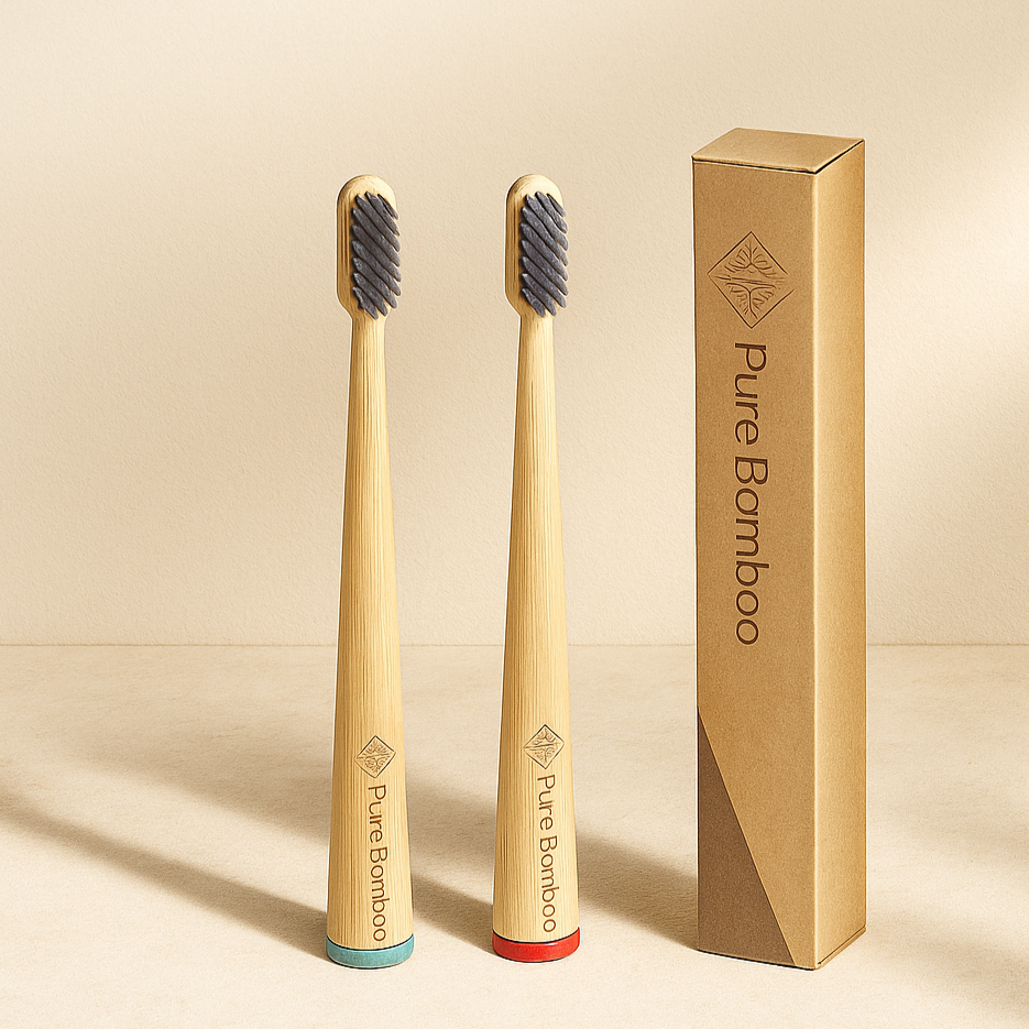Los cepillos de dientes Pure Bamboo están hechos de bambú 100 % biodegradable, lo que ofrece una alternativa ecológica a los cepillos de plástico tradicionales.